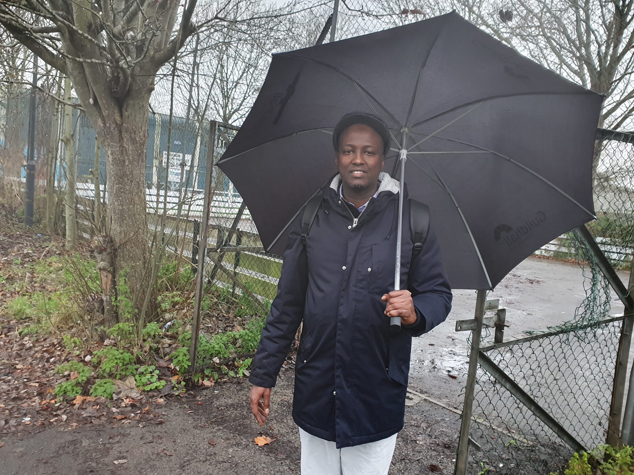 Umbrella in hand, he gestures at the empty basketball court, saying: “To have this as a proper facility could make a huge difference. People who are isolated, who cannot afford things, they will come here and have a network of young people and chance to improve their skills.