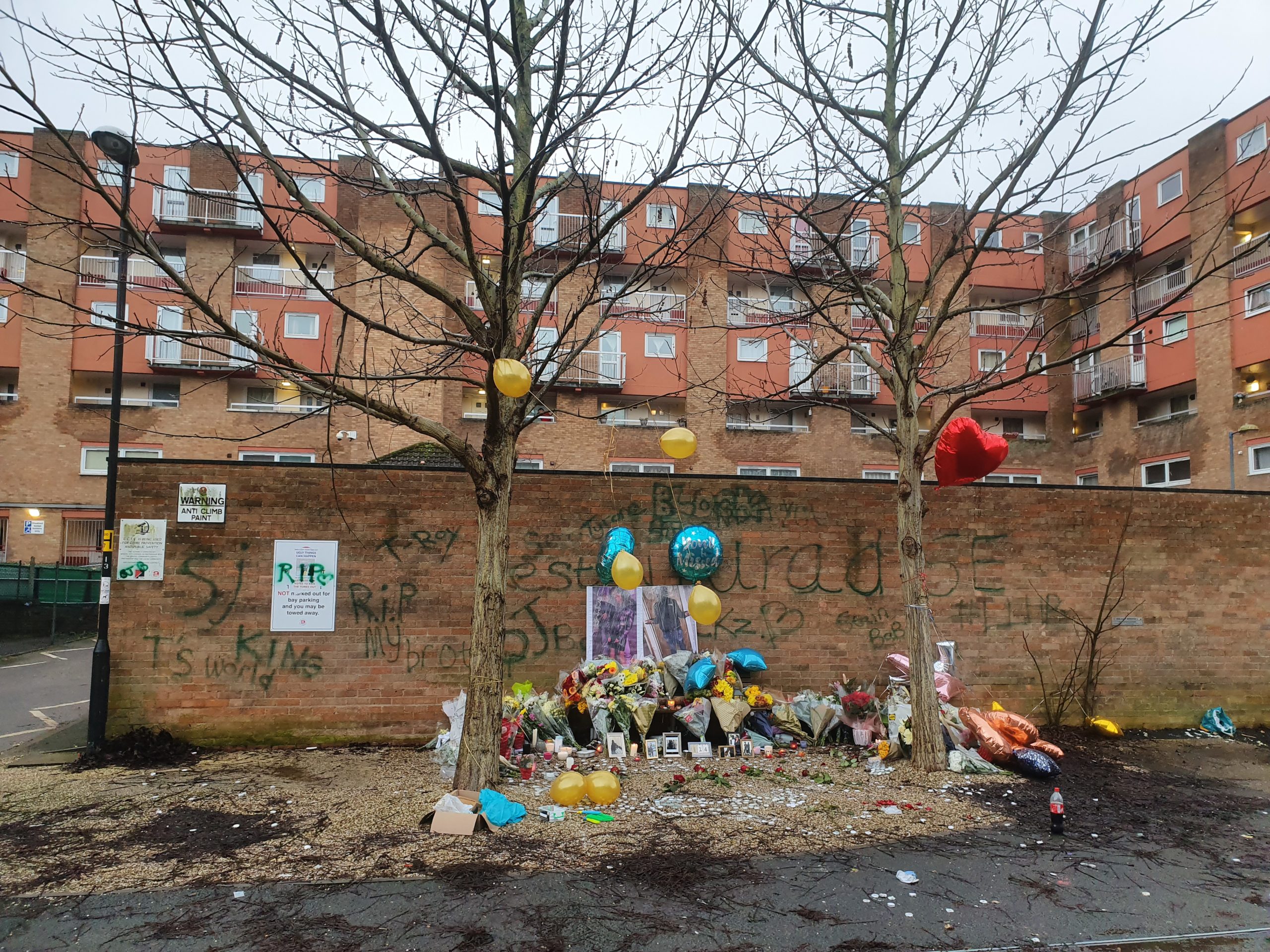 Tributes left following the murder of Tyrone Hayman in December 2019