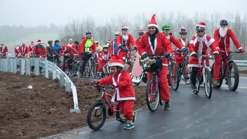Video: Cycling Santas first to use new road