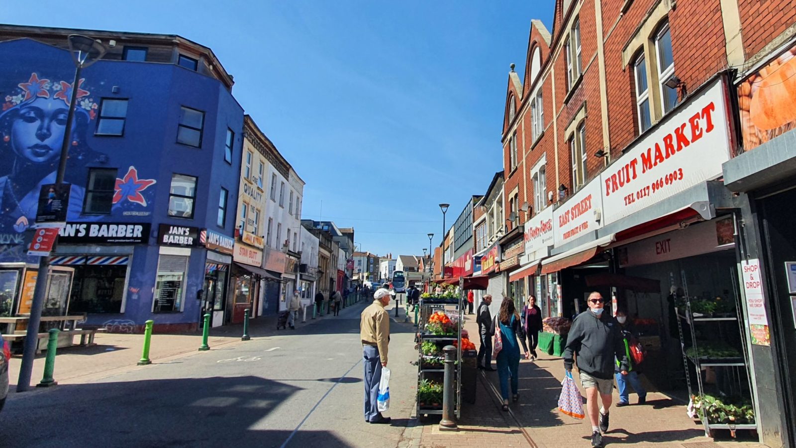 The area is bustling with shoppers, with some stopping to peruse the wares displayed on the market stalls outside East Street Fruit and Veg, while others queue at the last remaining bank branch.