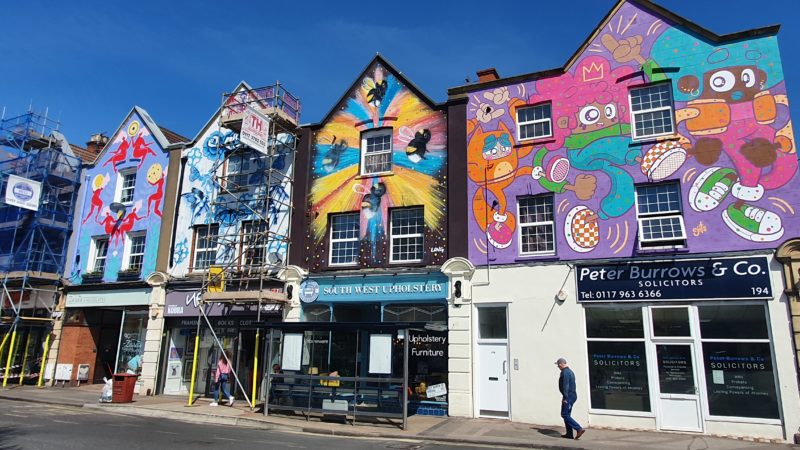 Work by an all-female lineup of Bristol artists is showcased above these North Street buildings