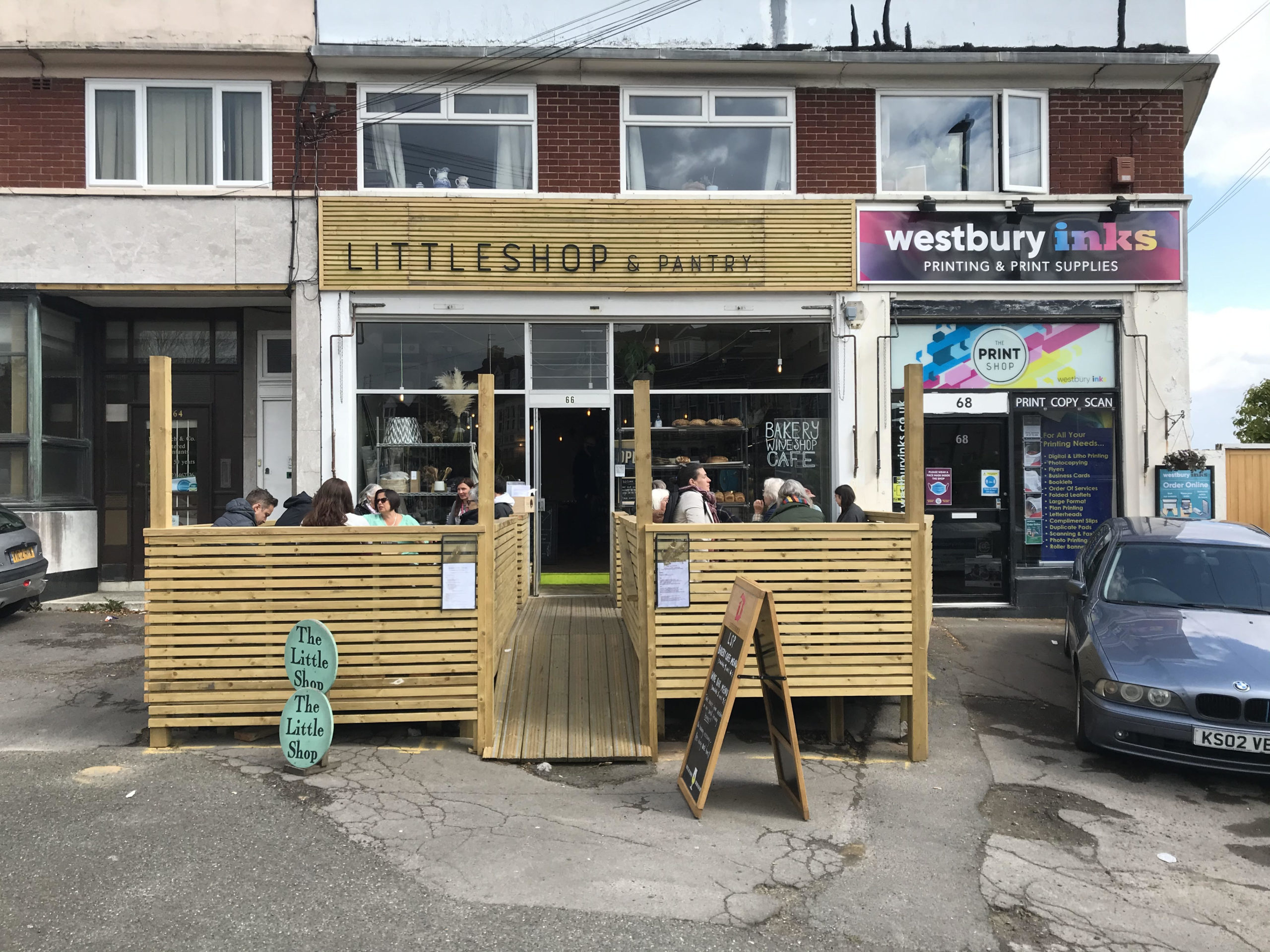 The new decking outside the Little Shop & Pantry on Northumbria Road – where Westbury Park meets Henleaze – was a popular spot on a sunny recent Thursday morning.