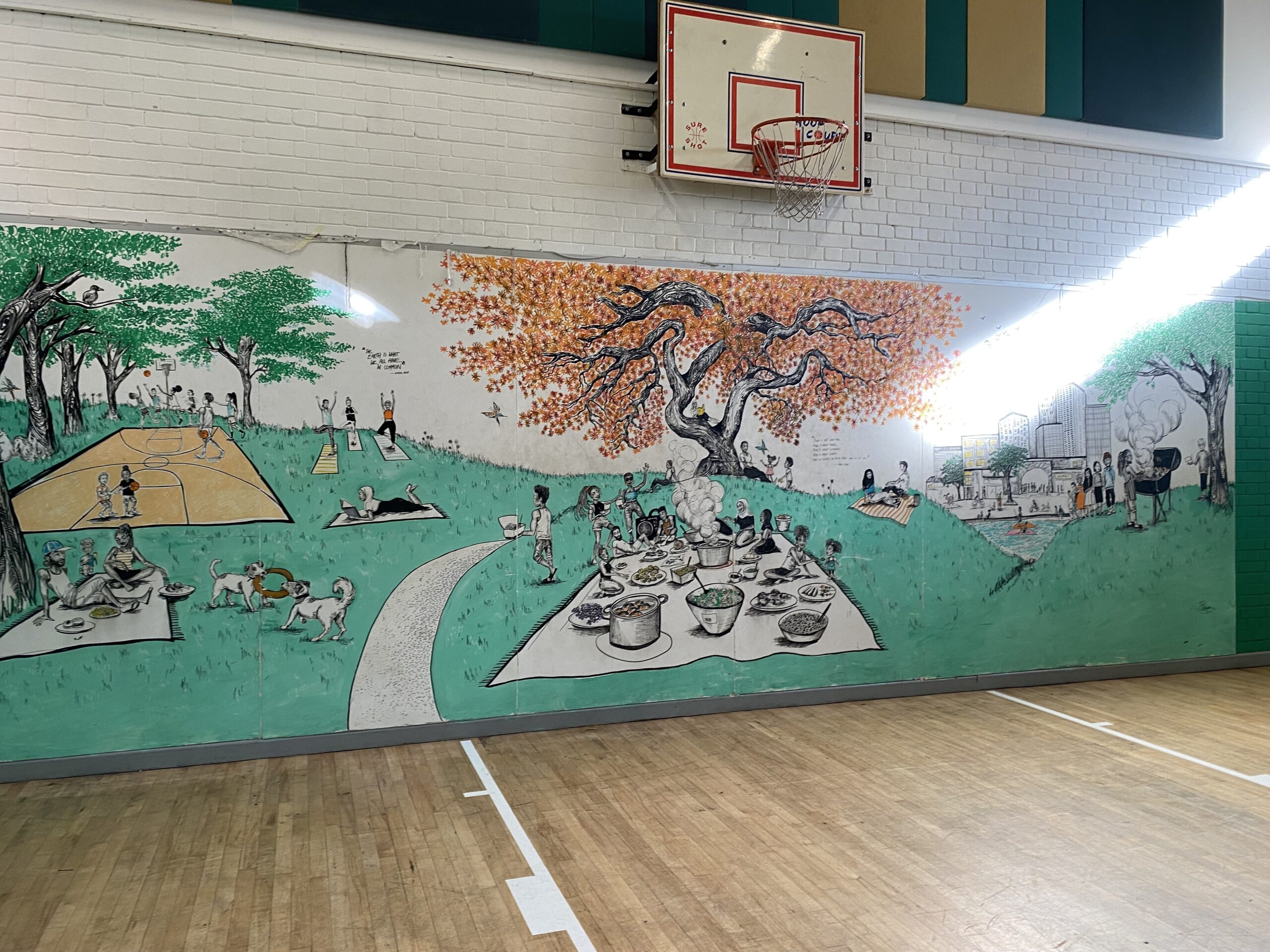 We meet in the Docklands kitchen, where meals are regularly served to young people. Next door, there is a gymnasium with a mural dedicated to the community of St Paul’s painted on one wall. There are also music rooms, sports classes and a playground.