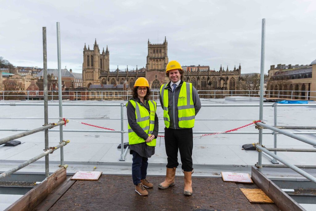 Donna Speed and Josh Carter of EG Carter & Co on the We The Curious roof – photo: Lisa Whiting