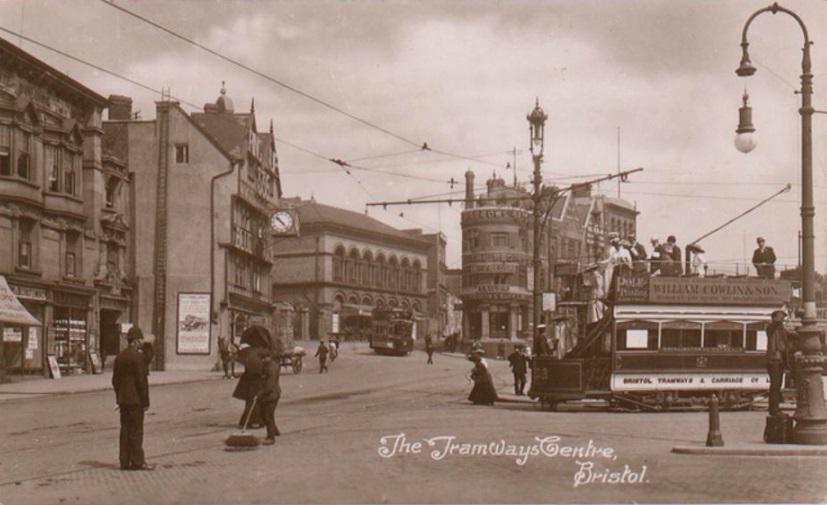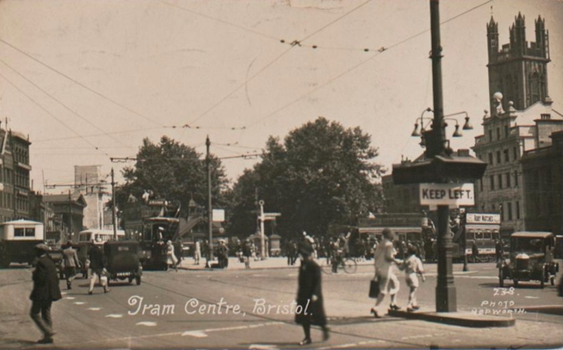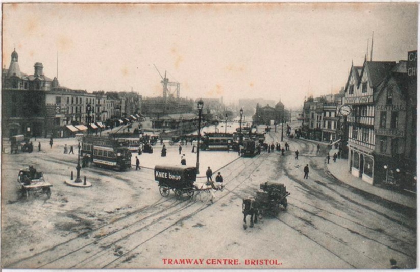 The tramway centre in the 1910s as seen from Colston Avenue – photo: Bristol Archives