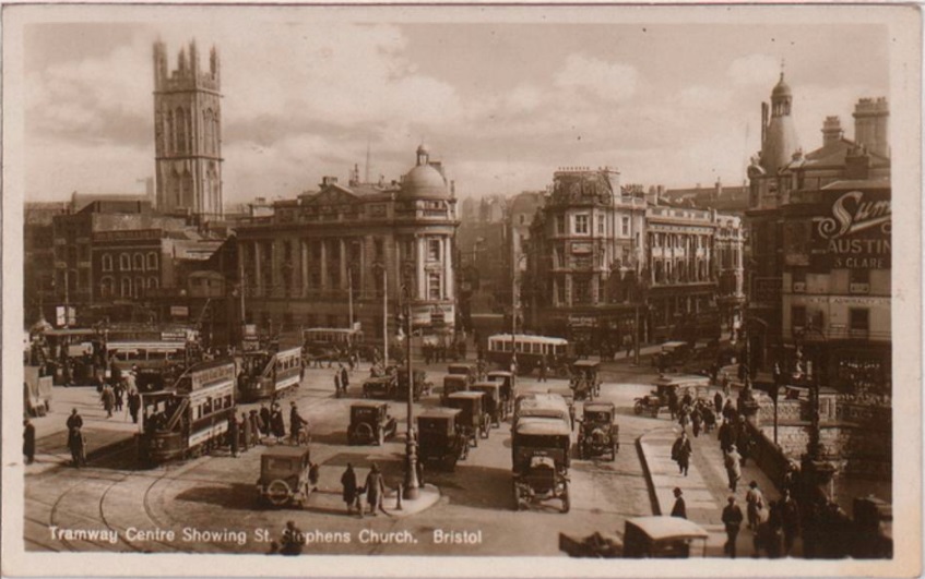 Looking across to St Stephen’s Church in the 1920s – photo: Bristol Archives