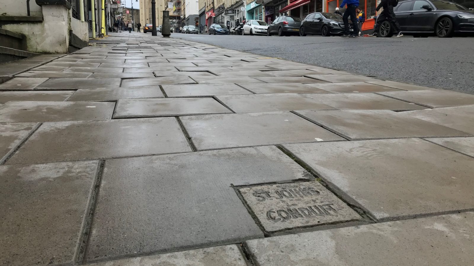 Carved onto this paving stone are the words ‘St John’s Conduit’, marking the route of a water supply that once served the old walled city of Bristol.
