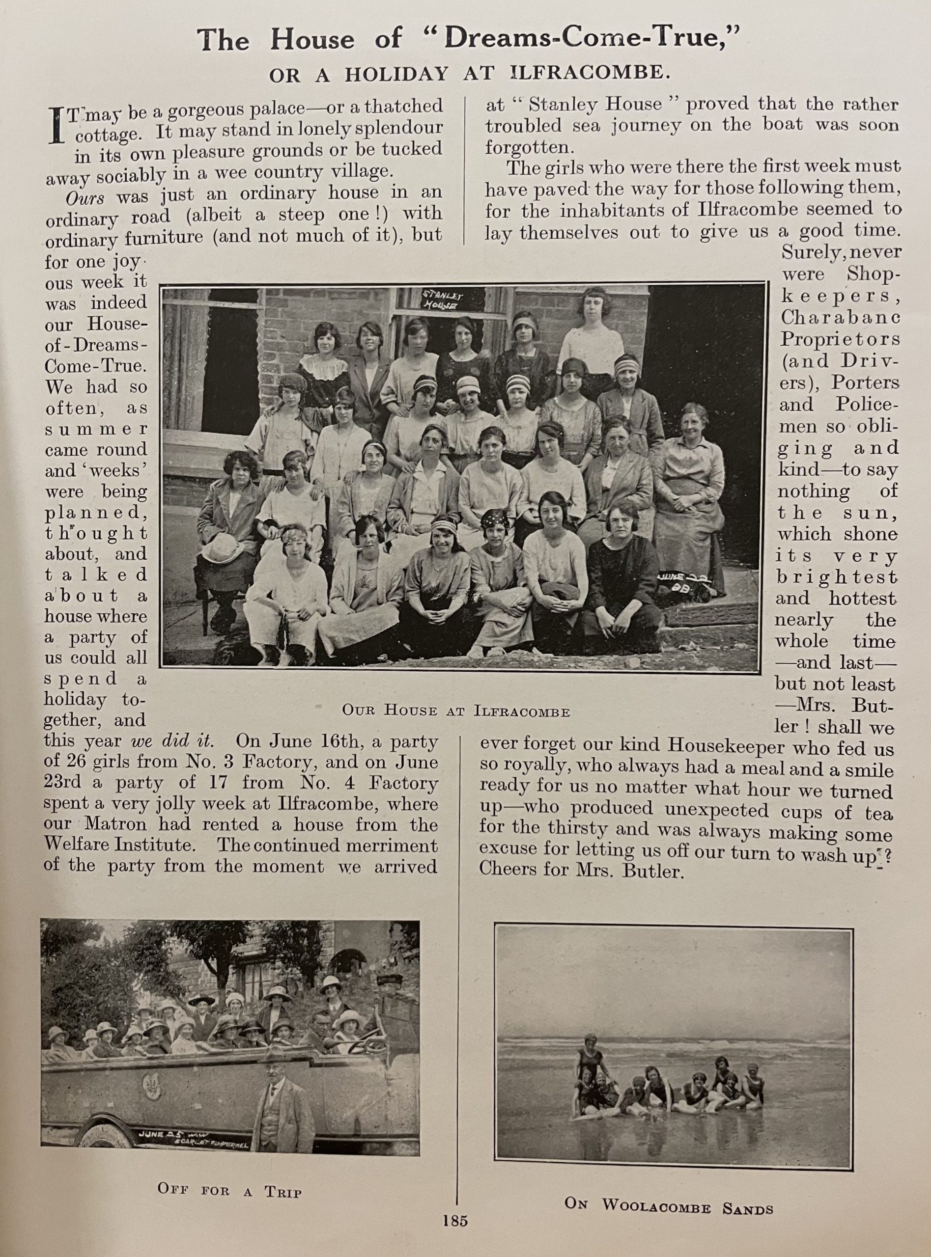 And there was also a write-up of the “girls’ outing” to Coombe Dingle: “The girls of No. 3, to the number of ninety, accompanied by the Matrons, had a very enjoyable outing on Saturday, June 24th, despite the inclement weather; consoling themselves for the torrents of rain by thinking how good it was for father’s allotment.”