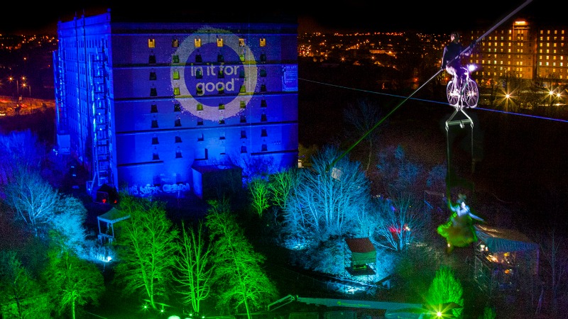 Created by Bristol-based Cirque Bijou, Bridging the Gap saw world-famous tight wire artist Jade Kindar-Martin cycling across a 120-metre-long high wire between the Create Centre and A Bond warehouse.