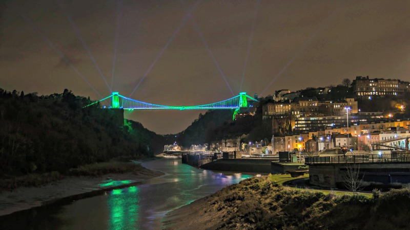 Photo of Clifton Suspension Bridge illuminated green at midnight on New Year’s Day by Jim Cossey