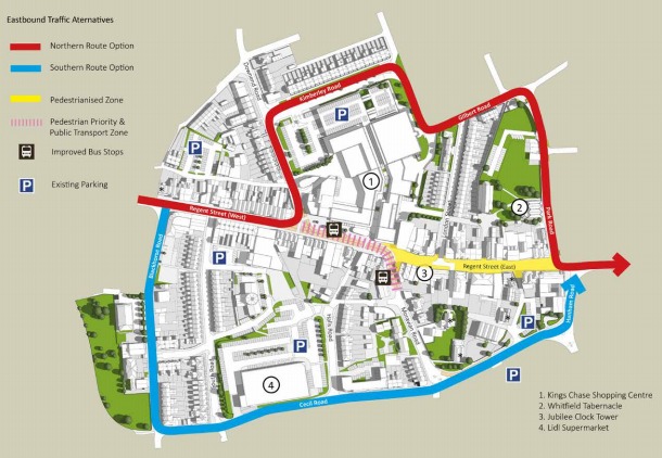 Residents were presented with two options for the diversion of traffic around part of Regent Street in a survey about the proposals last year.