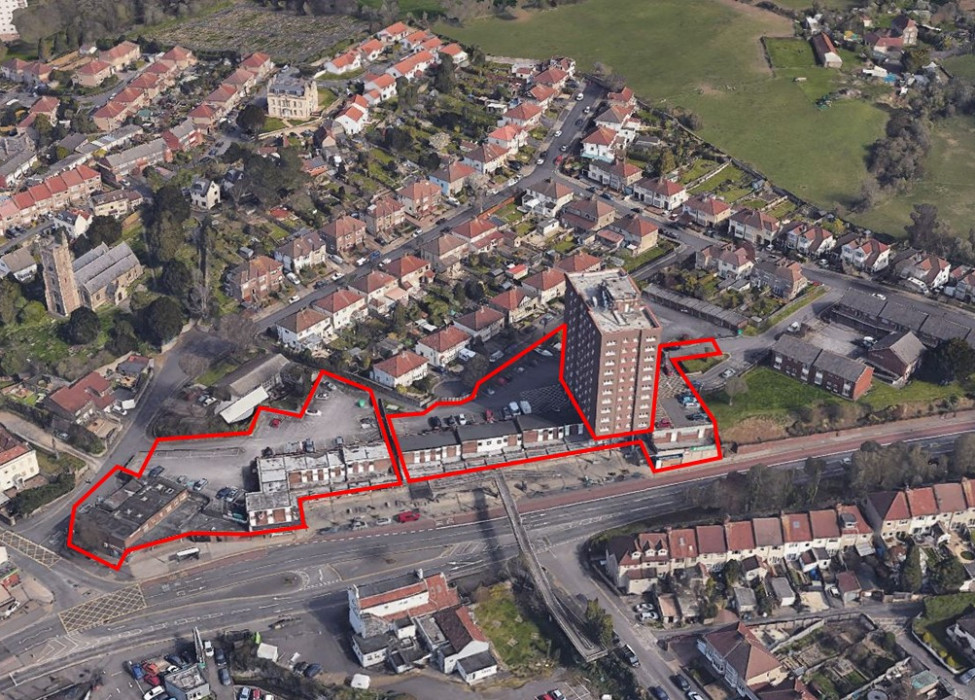 The property comprises two long leasehold interests including the existing shopping parade which fronts the Brislington Hill stretch of Bath Road – photo: Alder King