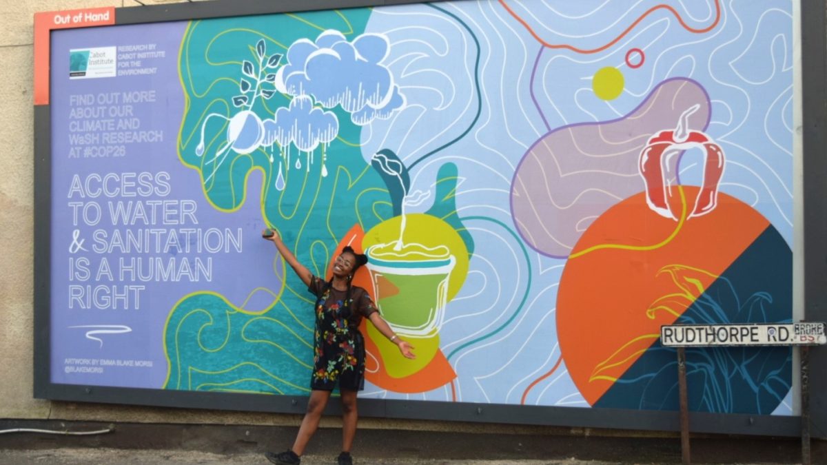 Young artistic activist has created a series of colourful billboards to support the Cabot Institute in the lead up to #COP26. Credit – Emma Blake Morsi
