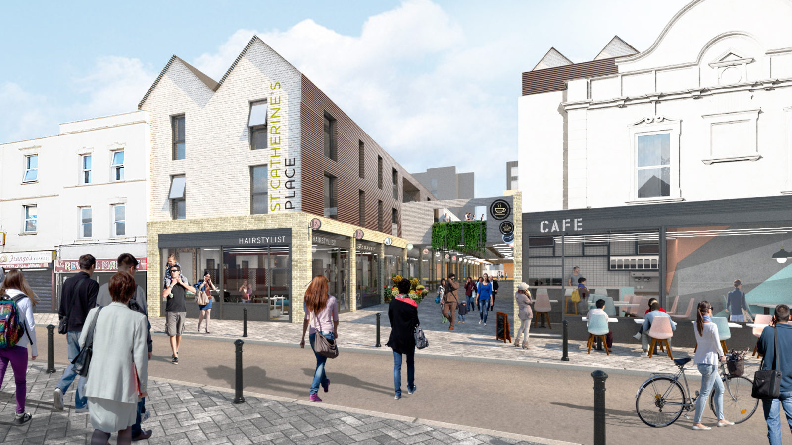 The plans for St Catherine’s Place included 205 apartments, retail units and a cinema. CGI image courtesy of Firmstone
