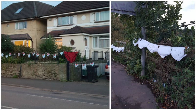 Stoke Lane itself became a temporary one-way road in June. But locals have had enough already, writing messages of protest on their pants:
