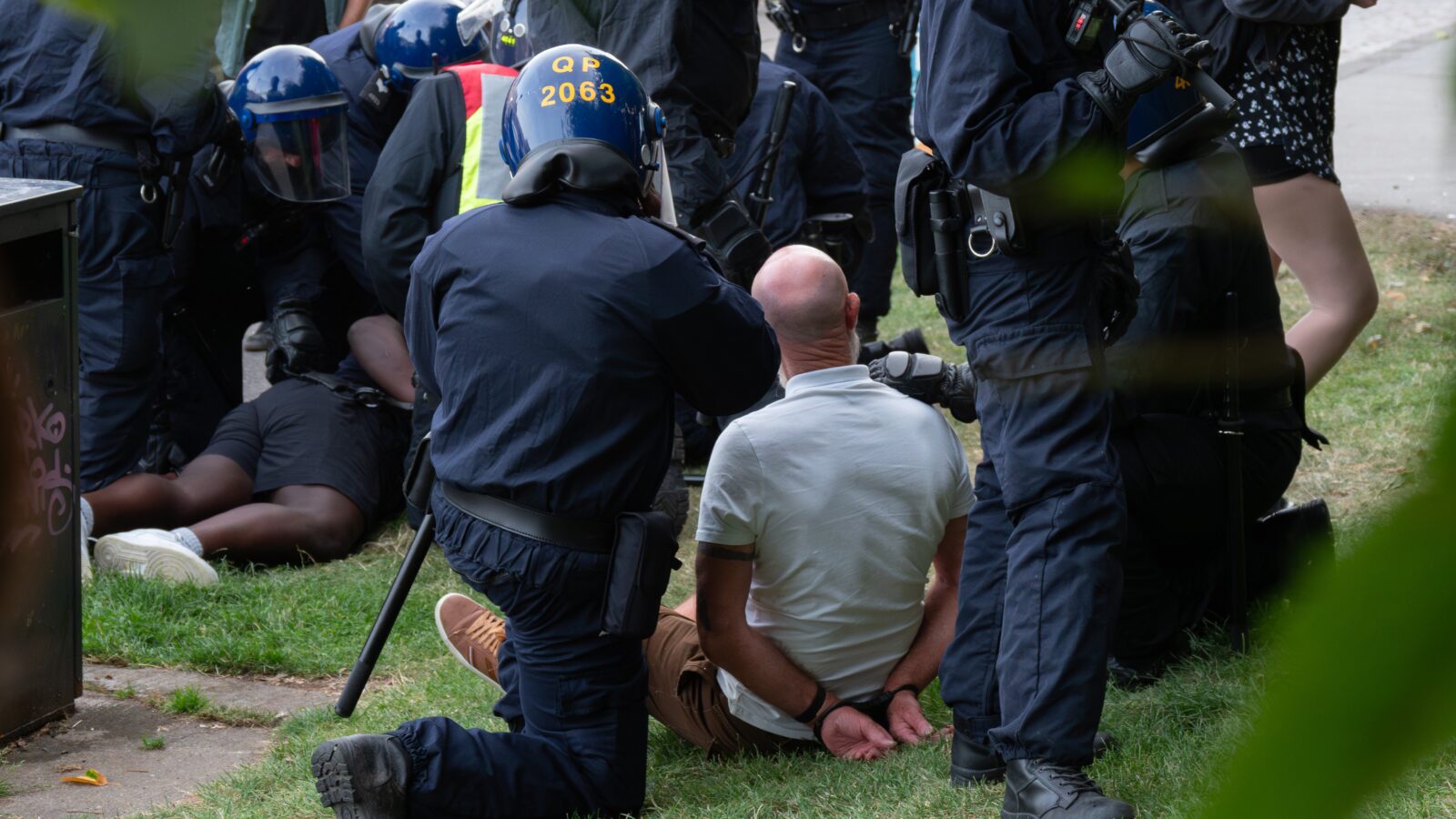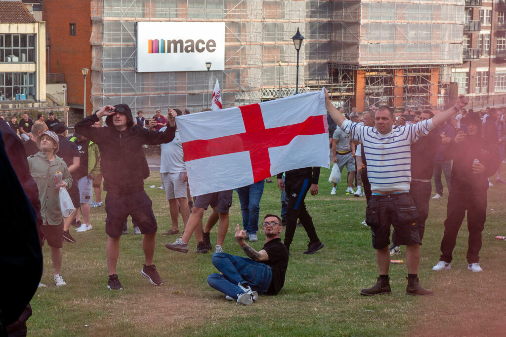 A far-right rally began in Castle Park on August 3 before a racist mob attempted to attack the Mercure Hotel in Redcliffe – photo: Rob Browne