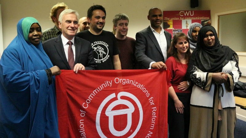 Marvin Rees and former labour shadow chancellor John McDonnell pose with an ACORN banner in 2016 – photo: Bristol24/7