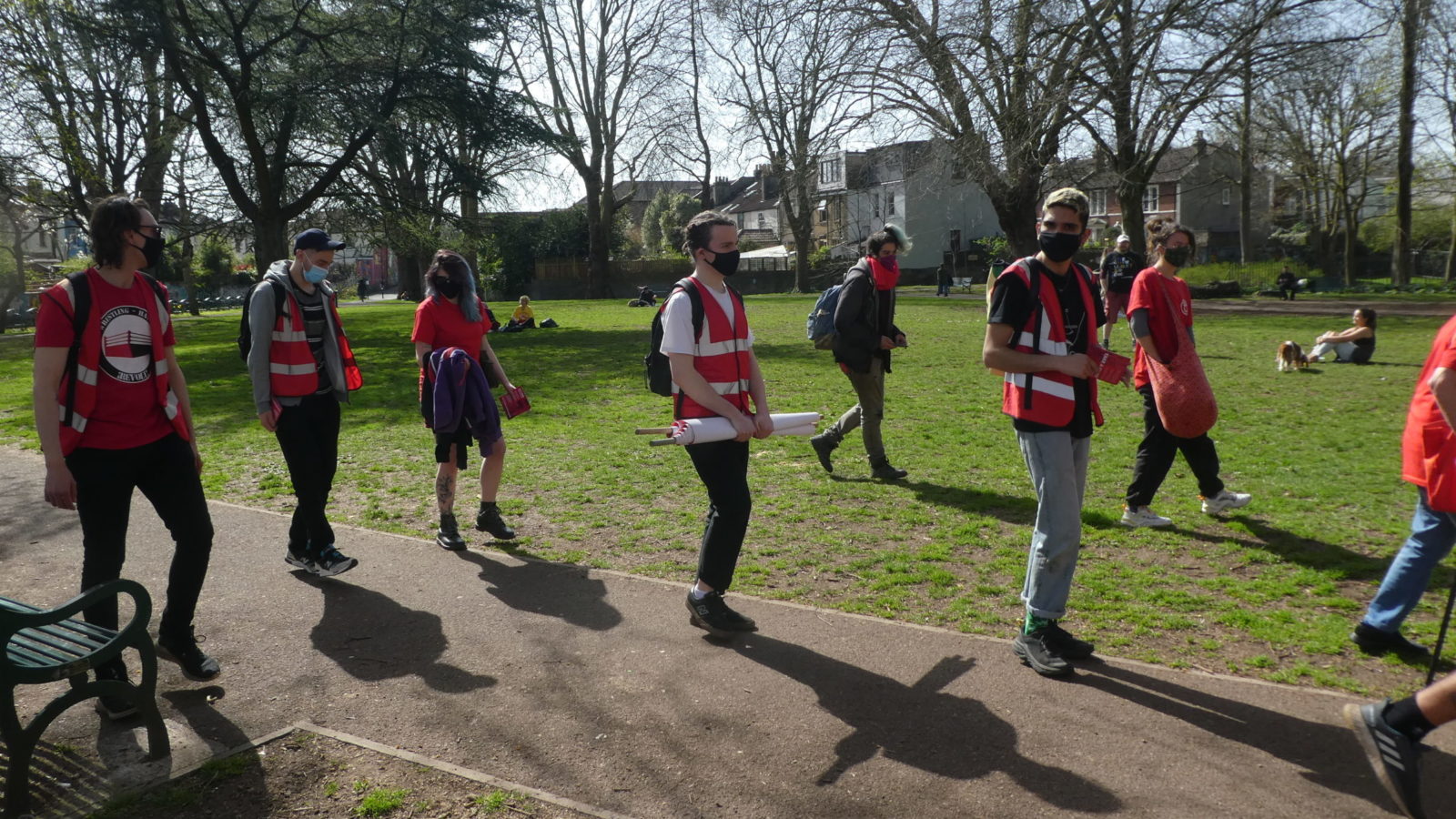 The group led the protest, which passed through Mina Park on its way to Let’s Rent on Mina Road, in solidarity with two tenants of the agency.