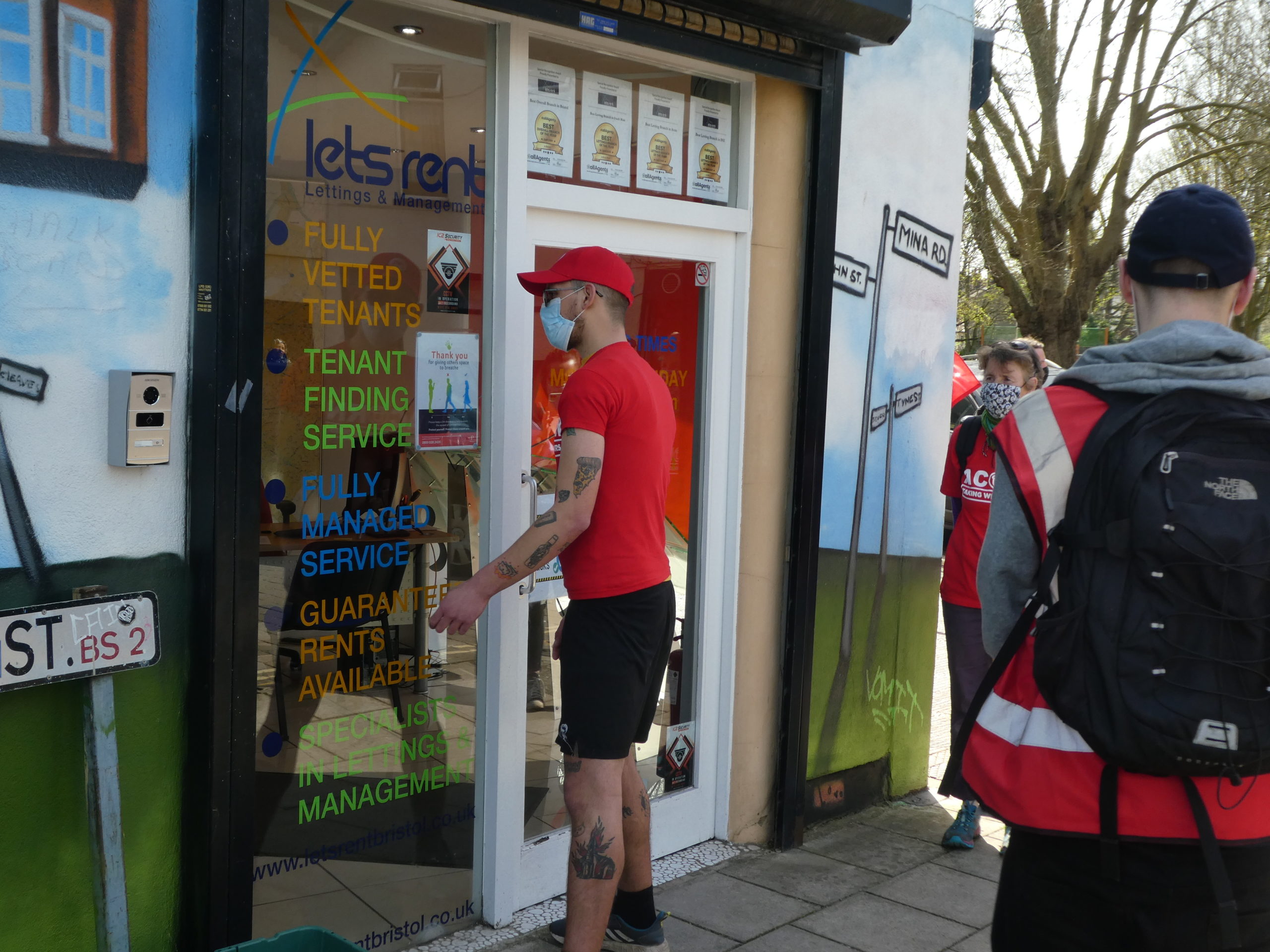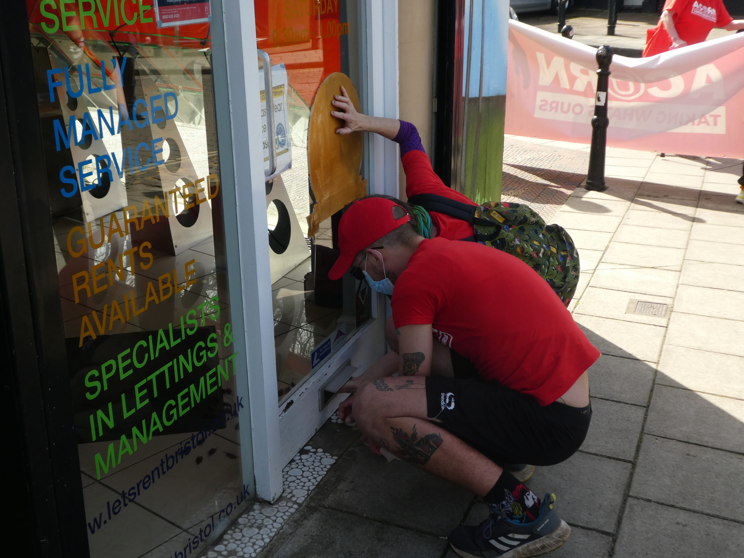 The socially distanced peaceful demonstration saw people march with banners and flags and Sam posting fake cockroaches through the letterbox of Let’s Rent.