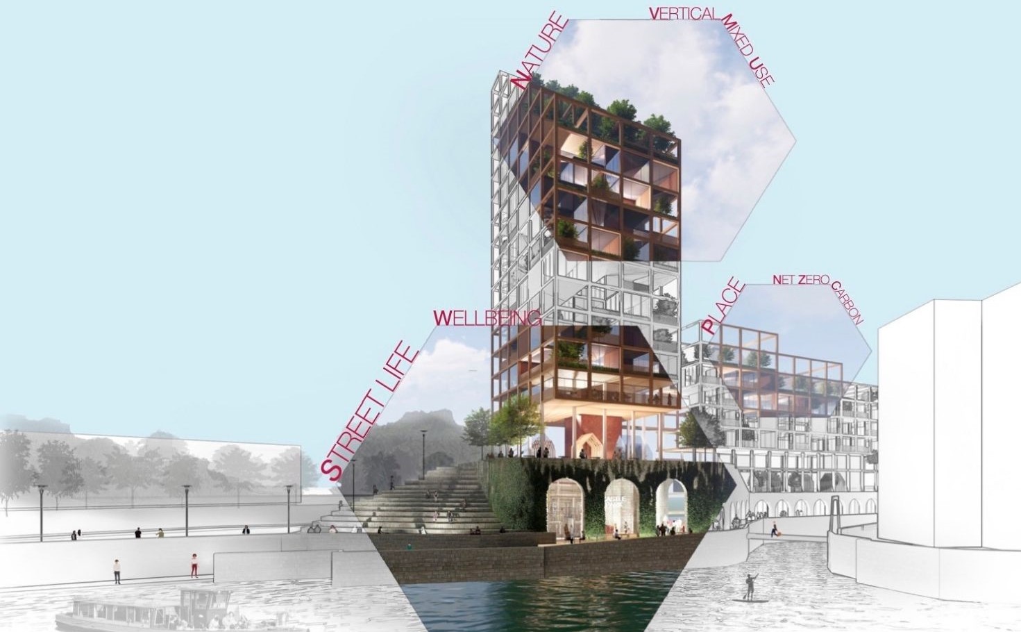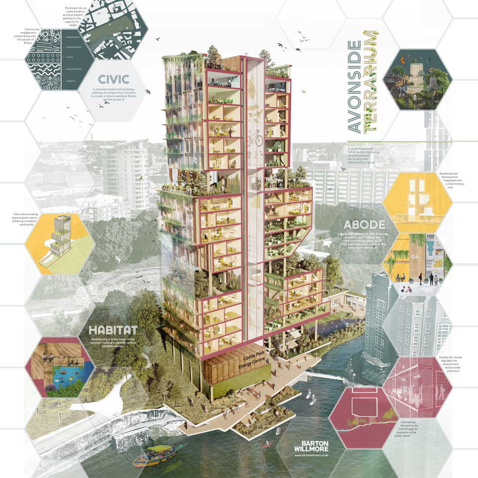Barton Willmore: “For us, this project creates an opportunity to challenge and redefine the principles behind building communities, and place social value at the forefront of the conversation. Our concept centres around the idea of a terrarium, a multi-functional microecosystem that creates and nurtures an ideal environment for life. We see this terraria as a layered response to the site, embedded within it socio-economic values, community engagement, low carbon and net-zero strategies and enhanced biodiversity to create an exemplar proposal for urban living and amenity for visitors. We live and breathe Bristol and believe our proposal will create a catalyst for transformation, addressing the climate, housing and skills crisis and placing Bristol front and centre as a beacon for positive change.” – image: Barton Willmore