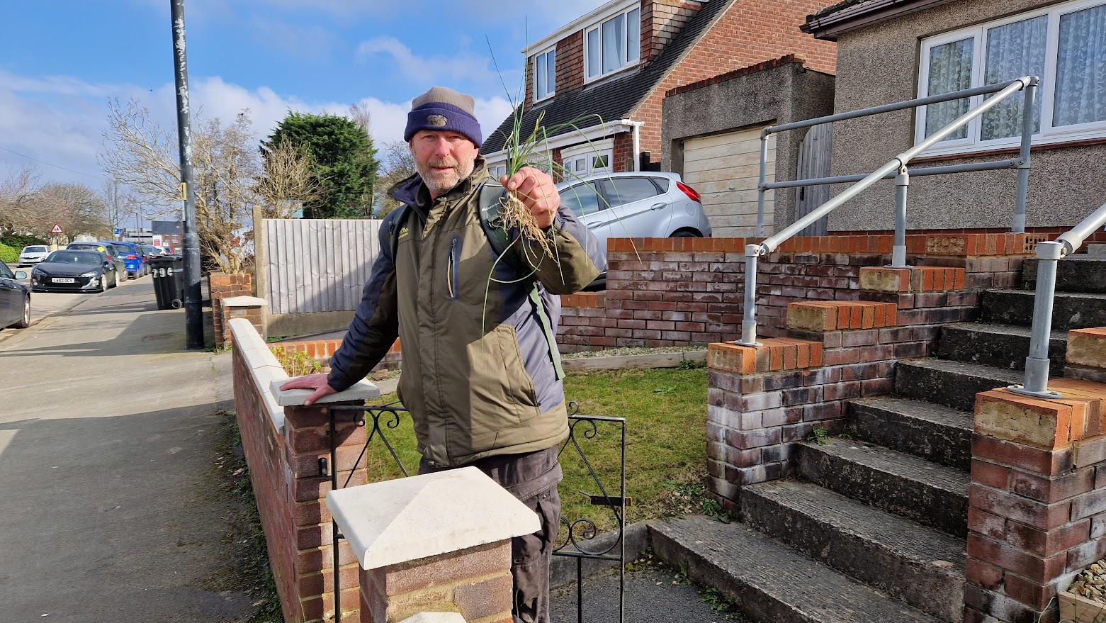 Two gardens along and Steve points out the abundance of wild onions growing. “I was here yesterday and a lady was doing some weeding. I told her those plants she was pulling out was actually wild chives, and I persuaded her to try one. She’s realised she’s got a garden full of them, so she’s left them now and hopefully will start to make use of them.”