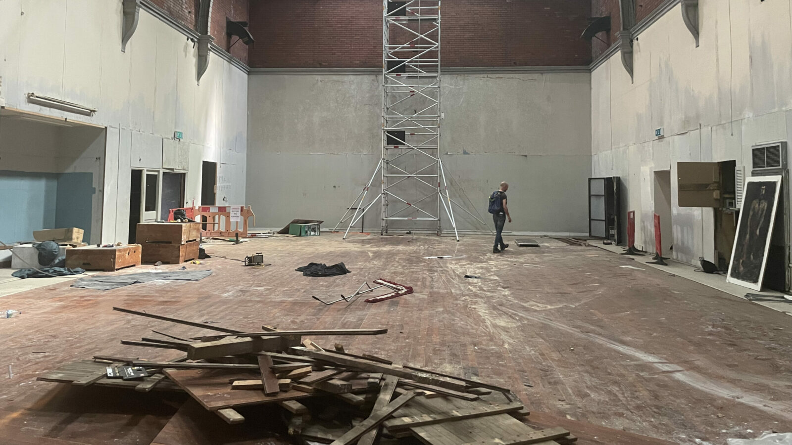 Currently, part of the main hall’s springboard dance floor, built above the historic swimming pool, has been ripped out – photo: Betty Woolerton