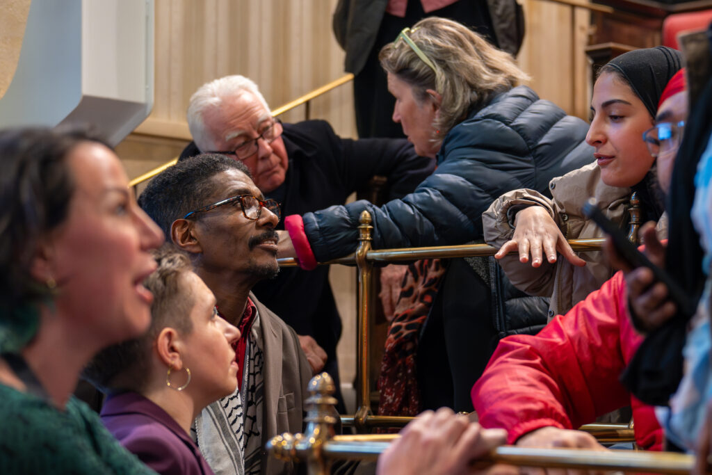 A group of Acorn members and council tenants then confronted Rees in the chamber, with Green councillors trying to defuse the situation.