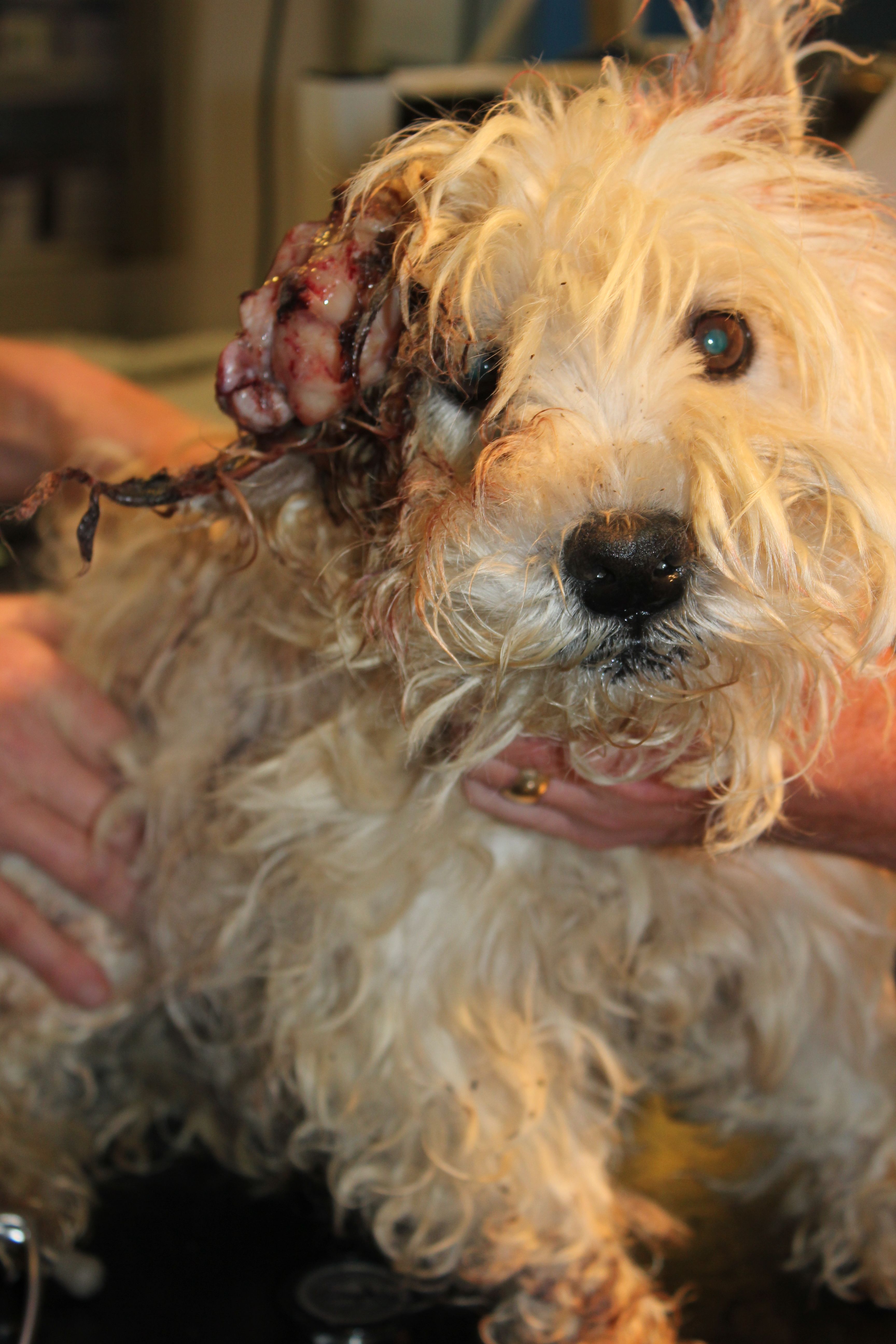 “Like something out of a horror film,” was how one inspector described the harrowing sight of a dog who was found dirty, emaciated and suffering from a severe, untreated tumour before being rushed straight to the charity’s clinic in Bristol.