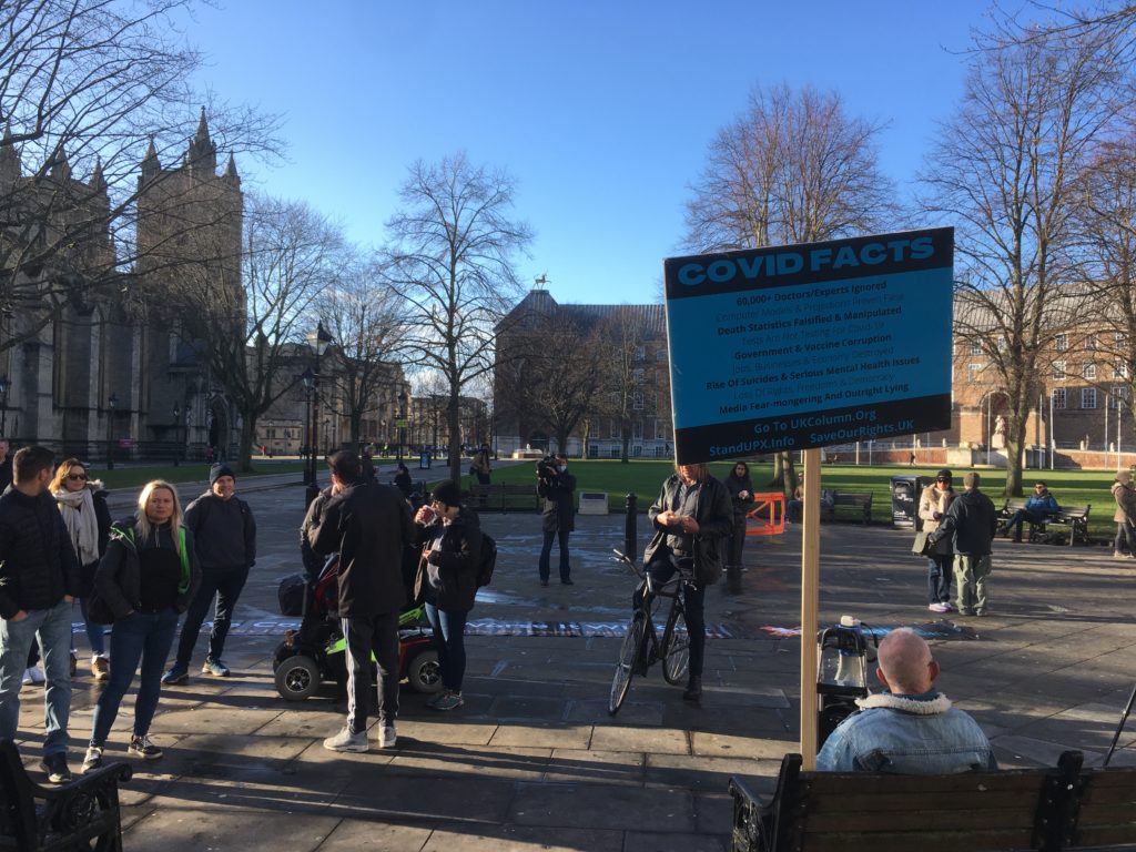 A group of around 200 people protesting against lockdowns, tiers, masks and vaccines, among other gripes, marched through Broadmead on Saturday afternoon.