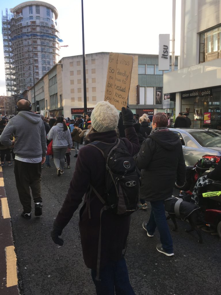 Brislington resident Pollyanna Stokes marched at the front throughout the afternoon, behind a large banner declaring: “The more we comply, the worse it will get.”