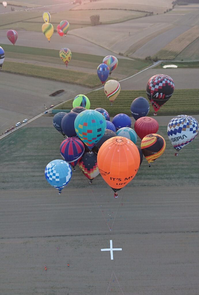 In the competition, pilots use the winds to guide their balloon to targets that have been set by the officials. They will then drop a marker as near to the target as they can.