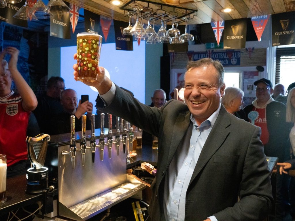 “Great time at the Three Lions pub in Bedminster,” tweeted Arron Banks. “Reform is surging big time & Labour should be very scared!” – photo: Arron Banks