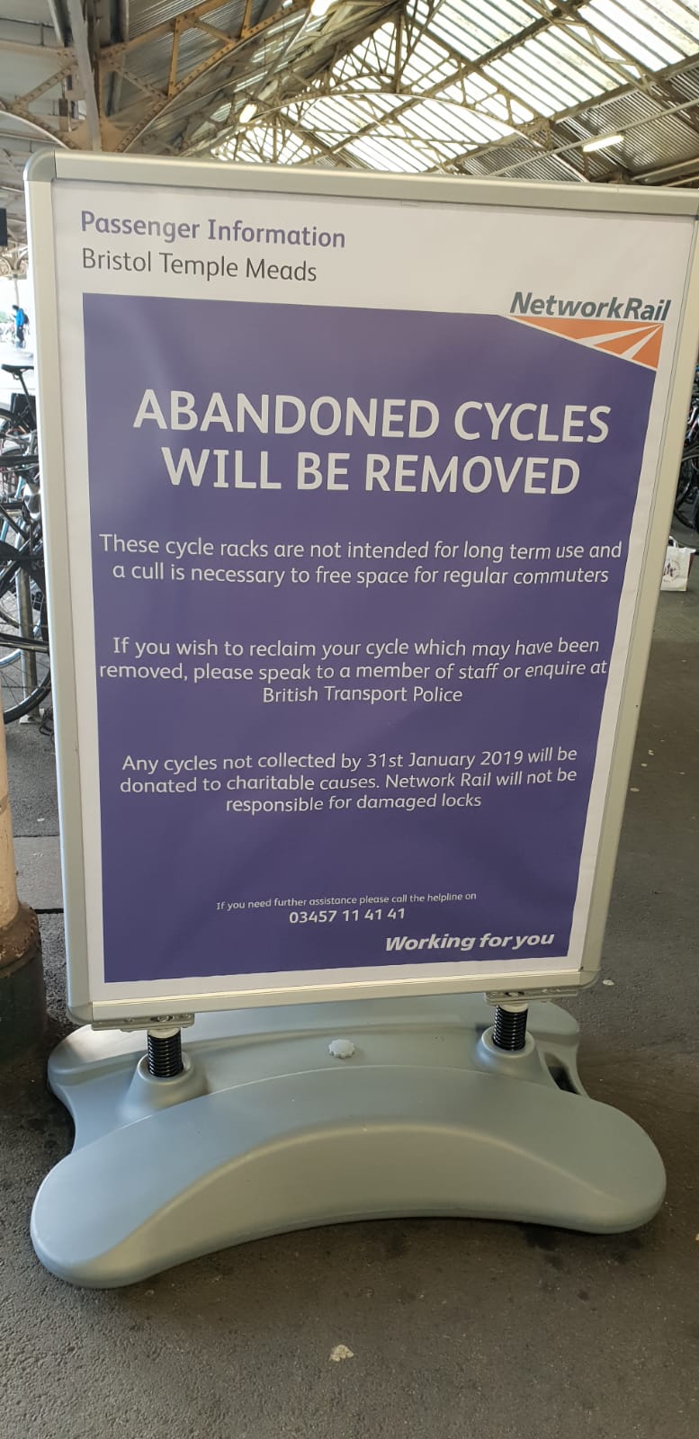 “Network Rail want to provide the best possible experience for passengers using the station and that means ensuring all our bike spaces are available and not taken up by abandoned bikes, or those stored here for extended periods,” said Andy Phillips, Network Rail station manager.