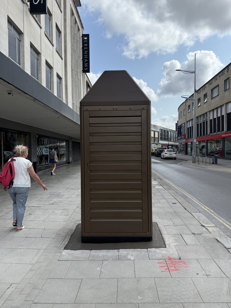 Two of the structures have appeared in Broadmead so far. One is in front of Shredenhams on the Horsefair and the other is outside Sainsbury’s opposite an entrance to Cabot Circus.
