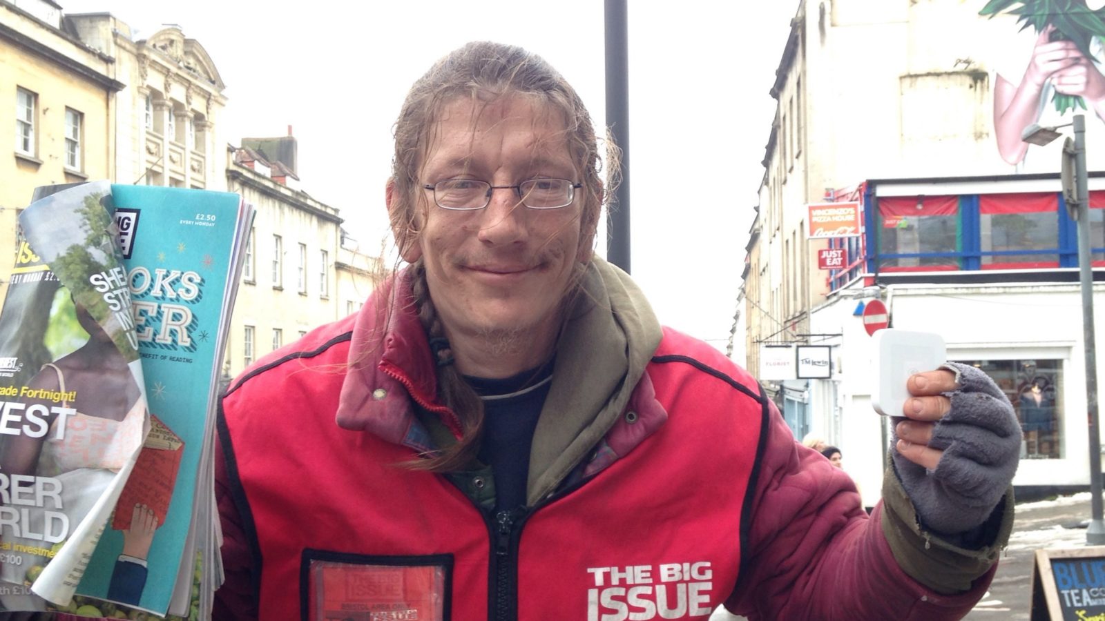 He is not the first Big Issue seller in Bristol to accept contactless payments – that honour goes to Robin Fabian, who sells the magazine outside the Co-Op on St Michael’s Hill.