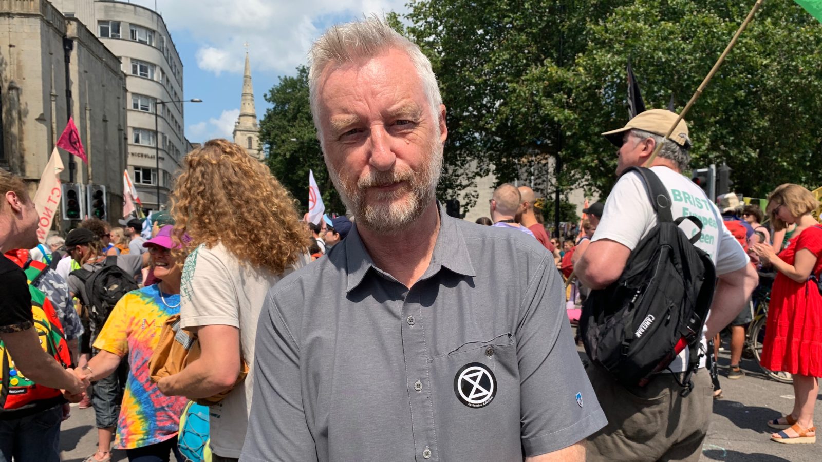 Billy Bragg made an appearance at the Extinction Rebellion protest in central Bristol on Tuesday.