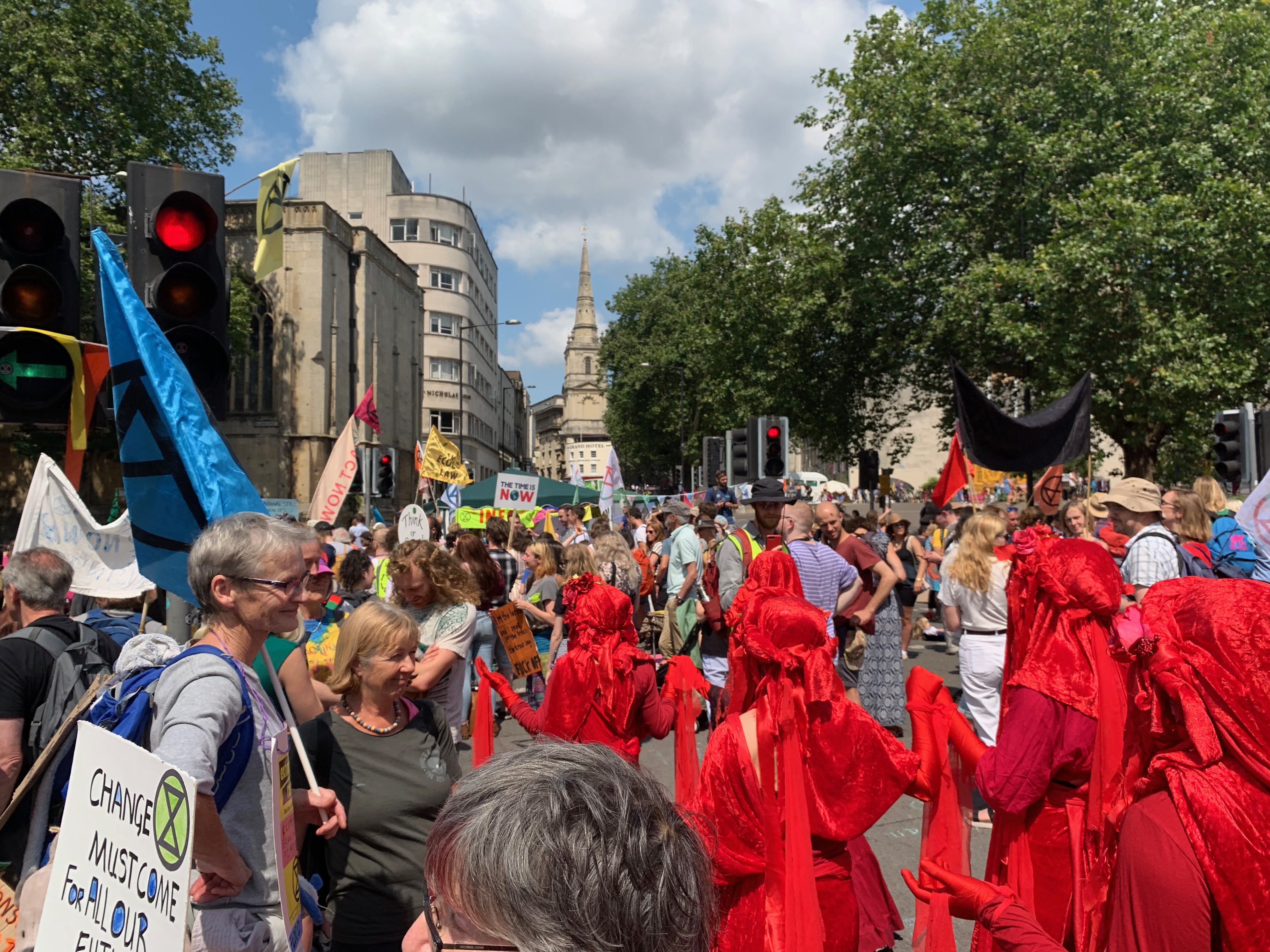 Extinction Rebellion protesters parading to College Green on Tuesday afternoon