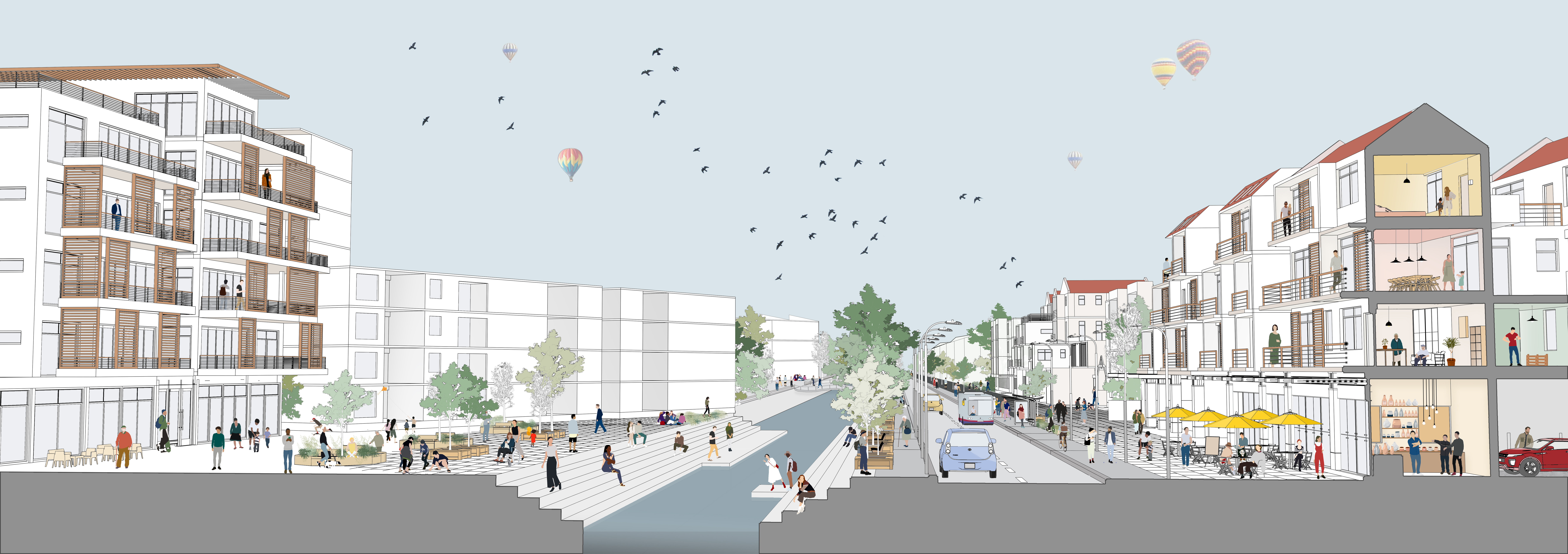 The masterplan includes a new mixed-use development on Feeder Road – image by Klaudia Kerry/ Marsh Maker group