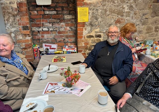 Sat a table with friends, and true to his word, enjoying cake and tea, he says: “You see local faces here.”