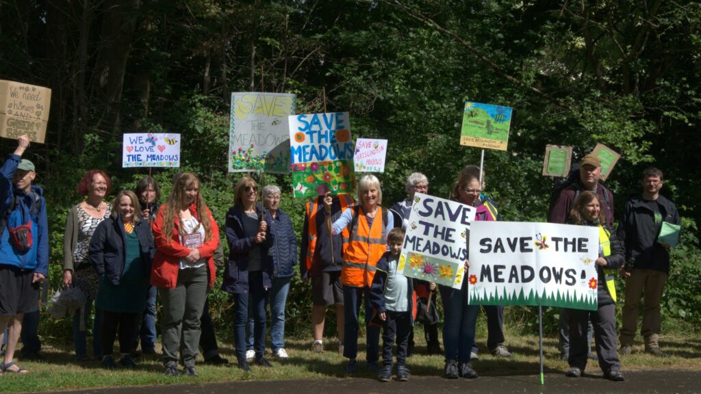 Campaigners march on Brislington Meadows in 2022 hoping to save the site – photo: Oren Taylor