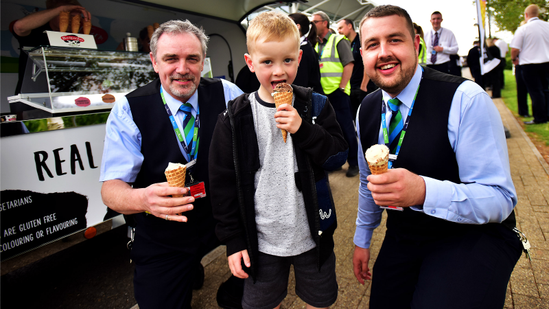 To celebrate, passengers and staff licked free local ice cream from Gloucestershire-based Marshfield Farms.