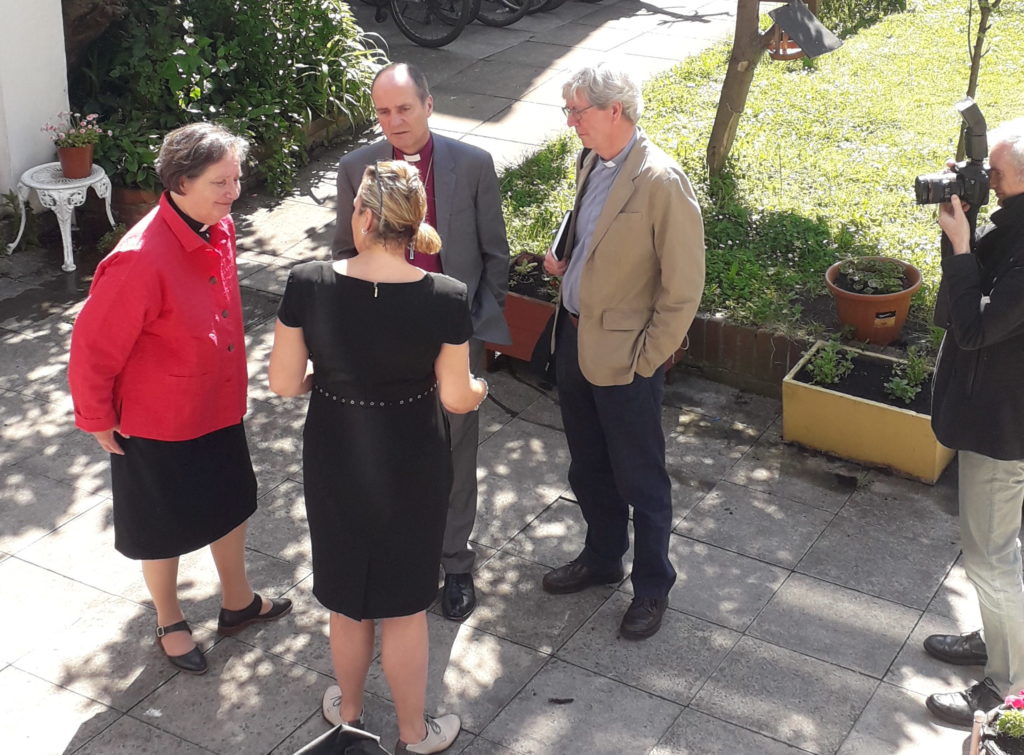 The Very Revd Vivienne Faull enjoying company in the garden of Barton Hill Settlement.