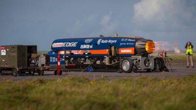 After successful test runs at Newquay Airport in 2017 saw the supersonic car reach speeds of 200mph, it was set to race on a specially-prepared 18km-long track at Hakseen Pan in South Africa in 2019.