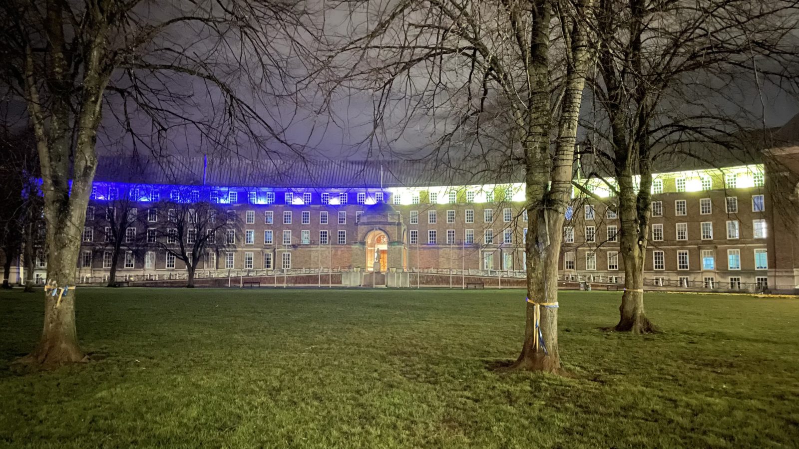 The colours of the Ukrainian flag had been beamed onto the top section of the building overlooking College Green to show solidarity with the country and its people.