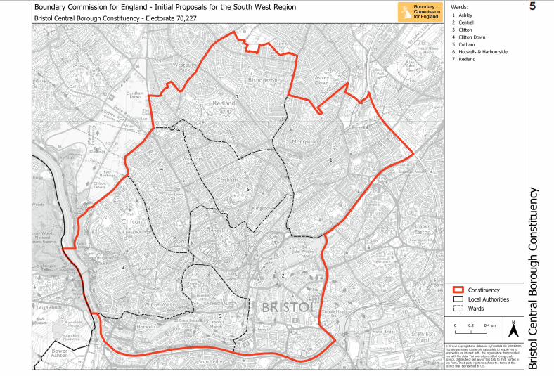The new Bristol Central constituency would encompass the wards of Ashley, Central, Clifton, Clifton Down, Cotham, Hotwells & Harbourside and Redland: which returned 11 Green councillors out of its 14 council seats in May’s local elections.