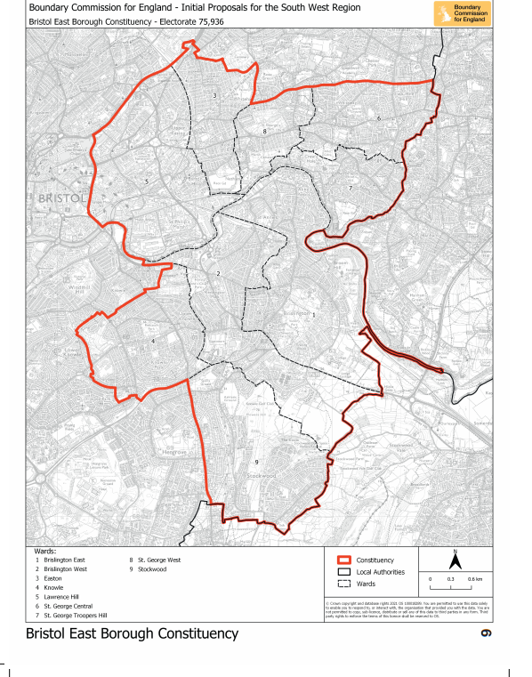 The wards of Lawrence Hill and Easton, from the existing Bristol West constituency, and Knowle, from the existing Bristol South constituency, would be included in the proposed Bristol East constituency.