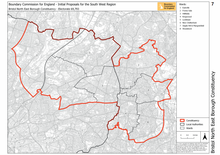 The proposals are that a Bristol North East constituency would contain the three Bristol wards of Frome Vale, Eastville, and Hillfields from the existing Bristol East constituency, and Lockleaze from the existing Bristol North West constituency, together with the four South Gloucestershire wards of New Cheltenham, Kingswood, Woodstock and and Staple Hill & Mangotsfield.