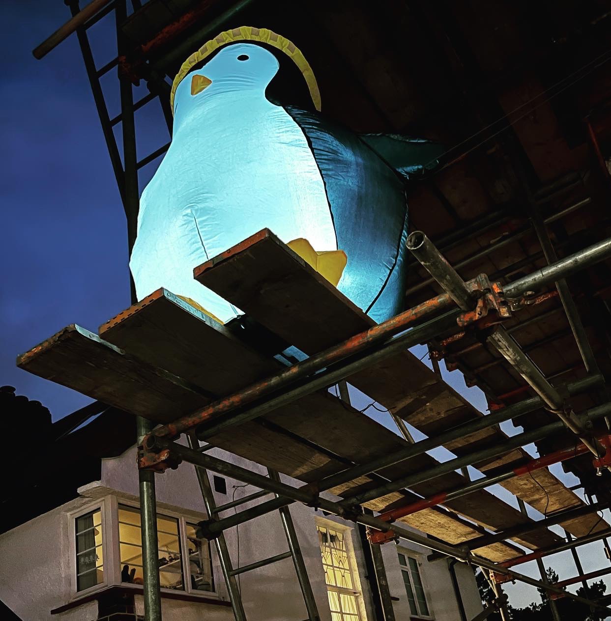 “Last year, I joined in and brought a big inflatable light-up Festive Penguin and stuck it on top of our porch.