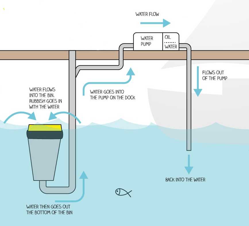 The Seabin is a floating bin that sucks rubbish off the water’s surface. It can collect 1.5kg of waste a day and can hold 12kg before it needs emptying.