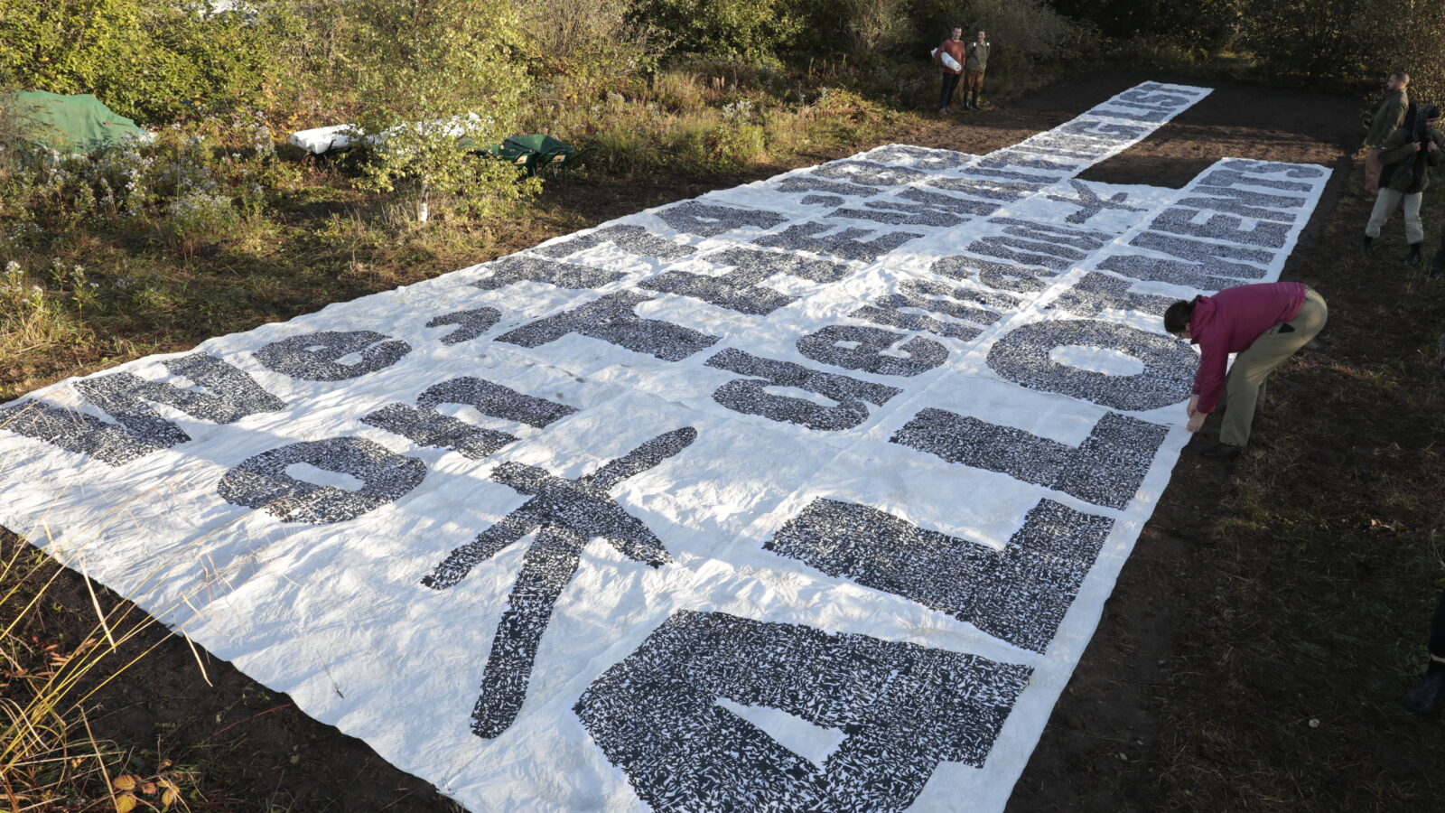 The artwork was embedded with clusters of seeds and ash from burned Amazon forests spelling out the message “We the 174,183 demand allotments”, and was a visual representation of the data collected by Greenpeace.